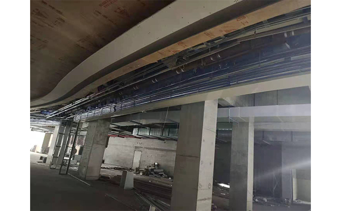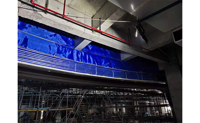 擋煙垂簾垂壁根據(jù)設(shè)計要求和現(xiàn)場實際情況采取如下施工順序:首先,搭設(shè)腳手架一放線一打眼--上脹栓一焊骨架。第二,吊件一安裝骨架…